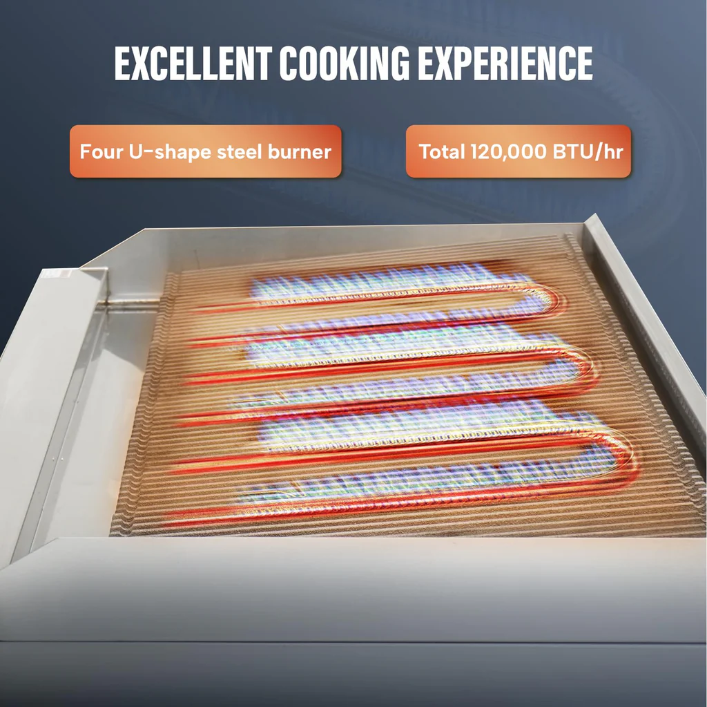 The WESTLAKE 48″ 4-Burner Commercial Gas Countertop Charbroiler delivers powerful, even heat for grilling, broiling, and searing in restaurants, cafes, and commercial kitchens. With 120,000 BTU output, specially designed radiant grates for even heat distribution, and heavy-duty stainless steel construction, this ETL-certified charbroiler is built for the demands of professional cooking environments.