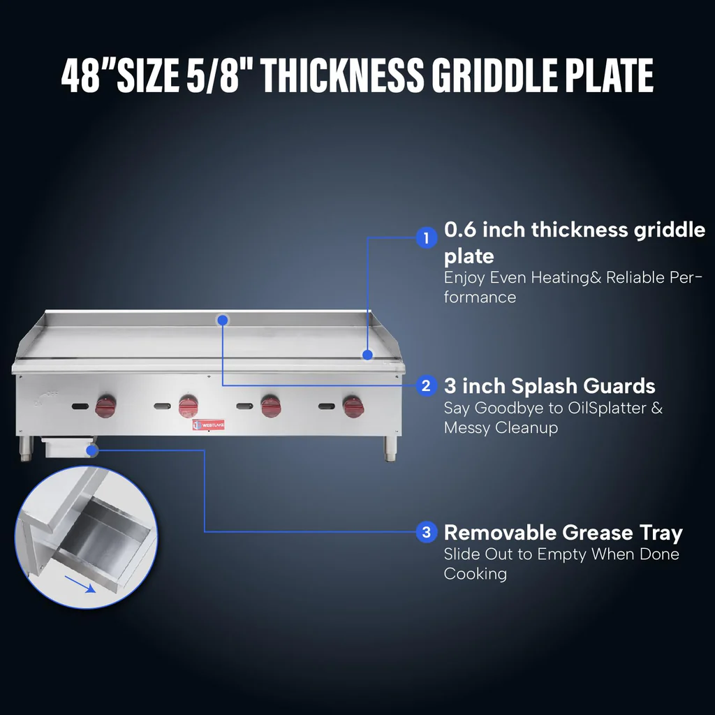 Be the first to review “WESTLAKE 48″ Commercial Gas Griddle | 4 Burner Countertop Plate Grill 120,000 BTU”