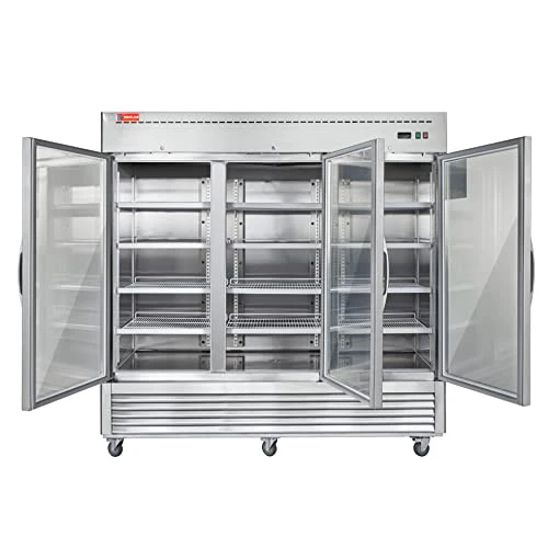 The WESTLAKE 82″ 3-Door Glass Commercial Refrigerator (Model: WKR-82BG) delivers reliable, heavy-duty performance for restaurants, bars, retail stores, and commercial kitchens. With 72 cubic feet of storage capacity and glass doors for product visibility, this 3-door upright merchandiser refrigerator provides ample space for displaying beverages, food items, and perishables while maintaining consistent 33℉ to 40℉ cooling temperatures.