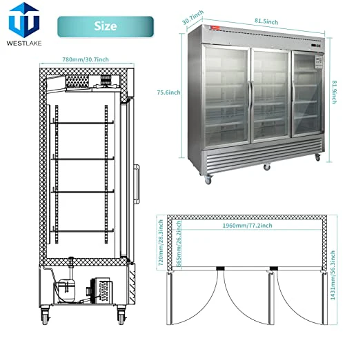 Be the first to review “WESTLAKE 82″ 3-Door Restaurant Commercial Glass Fridge Refrigerator Merchandiser 72 Cu.ft Stainless Steel Display Cooler”